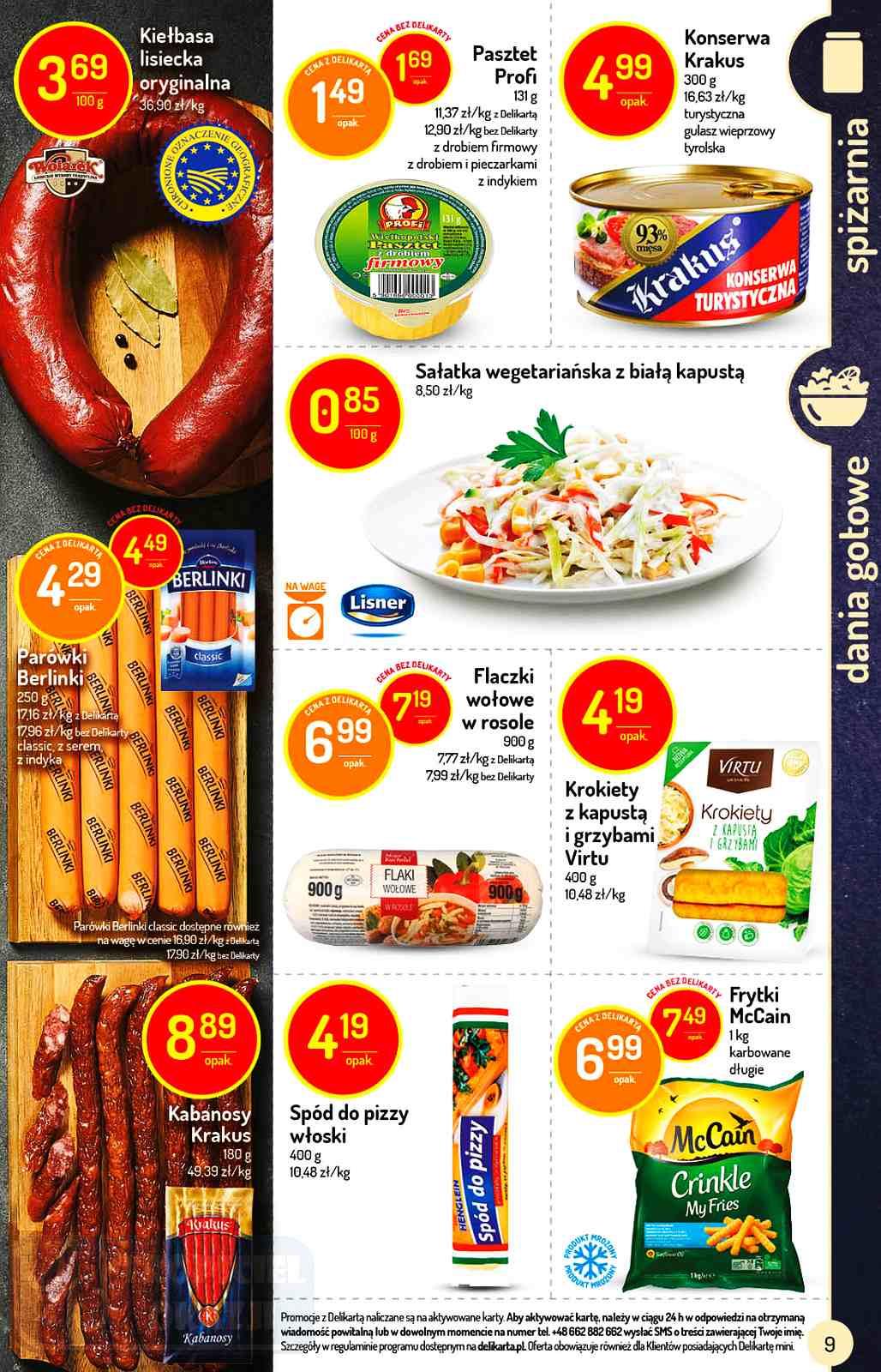 pasztet,konserwa,sałatka,parówki,kabanosy,spód do pizzy,frytki,krokiety